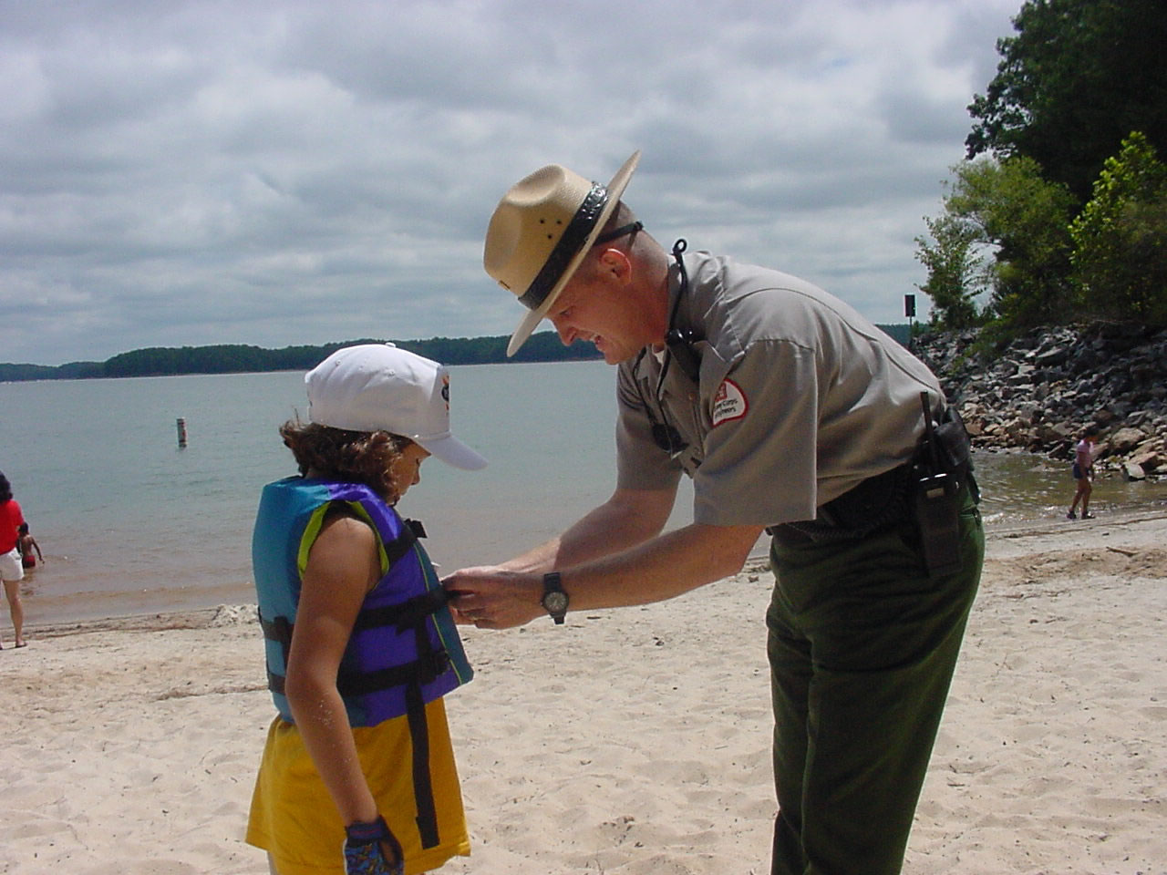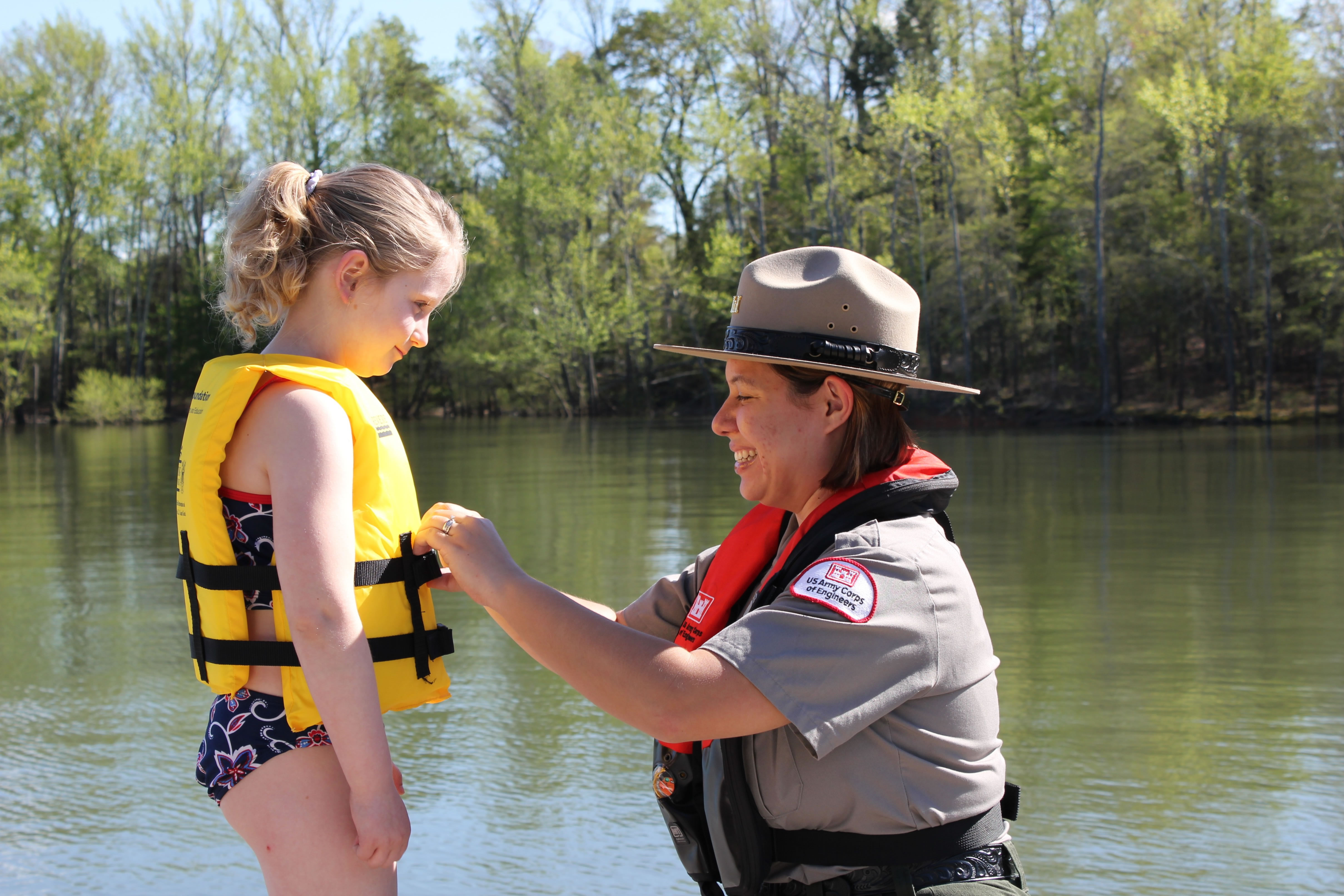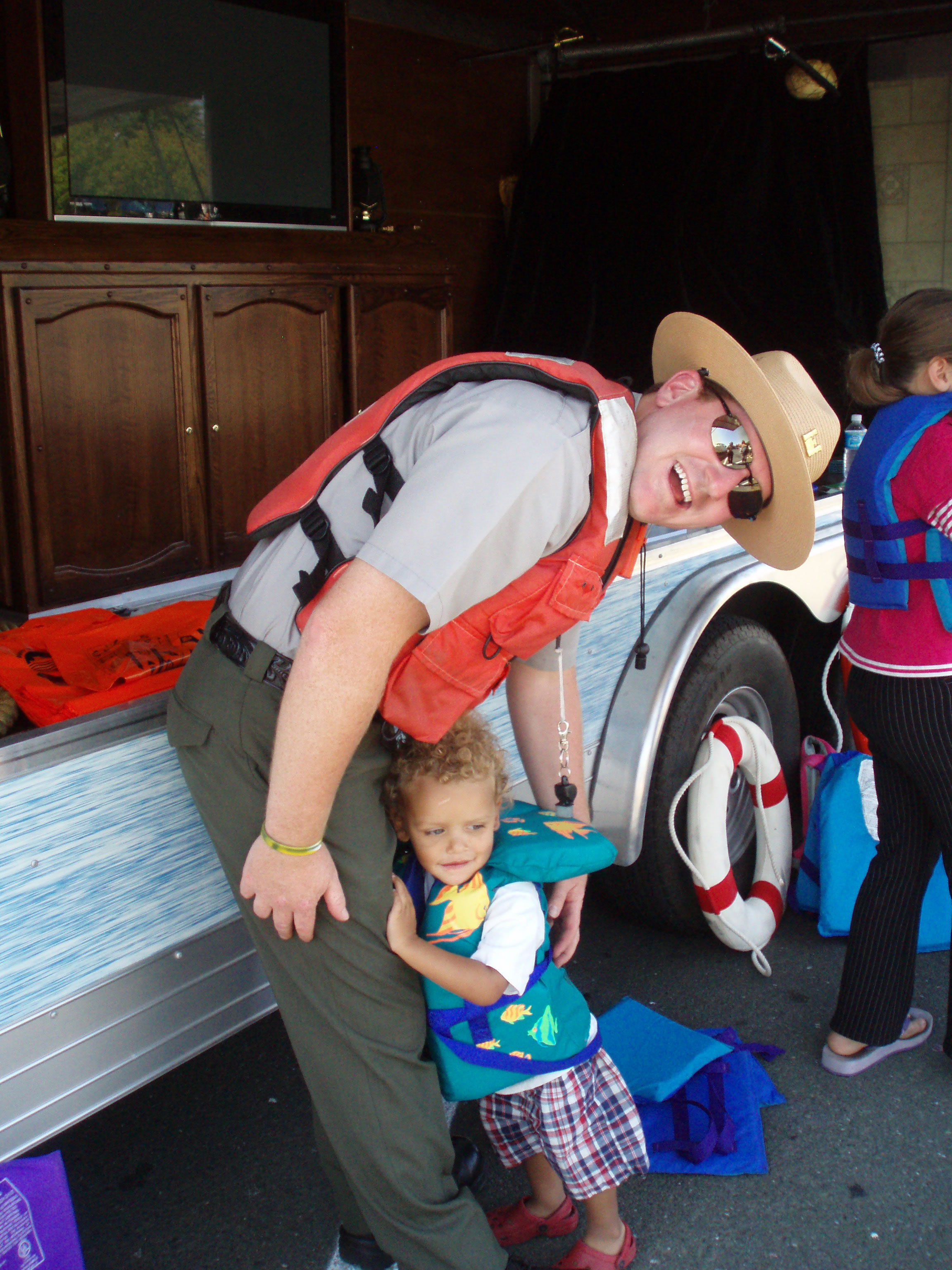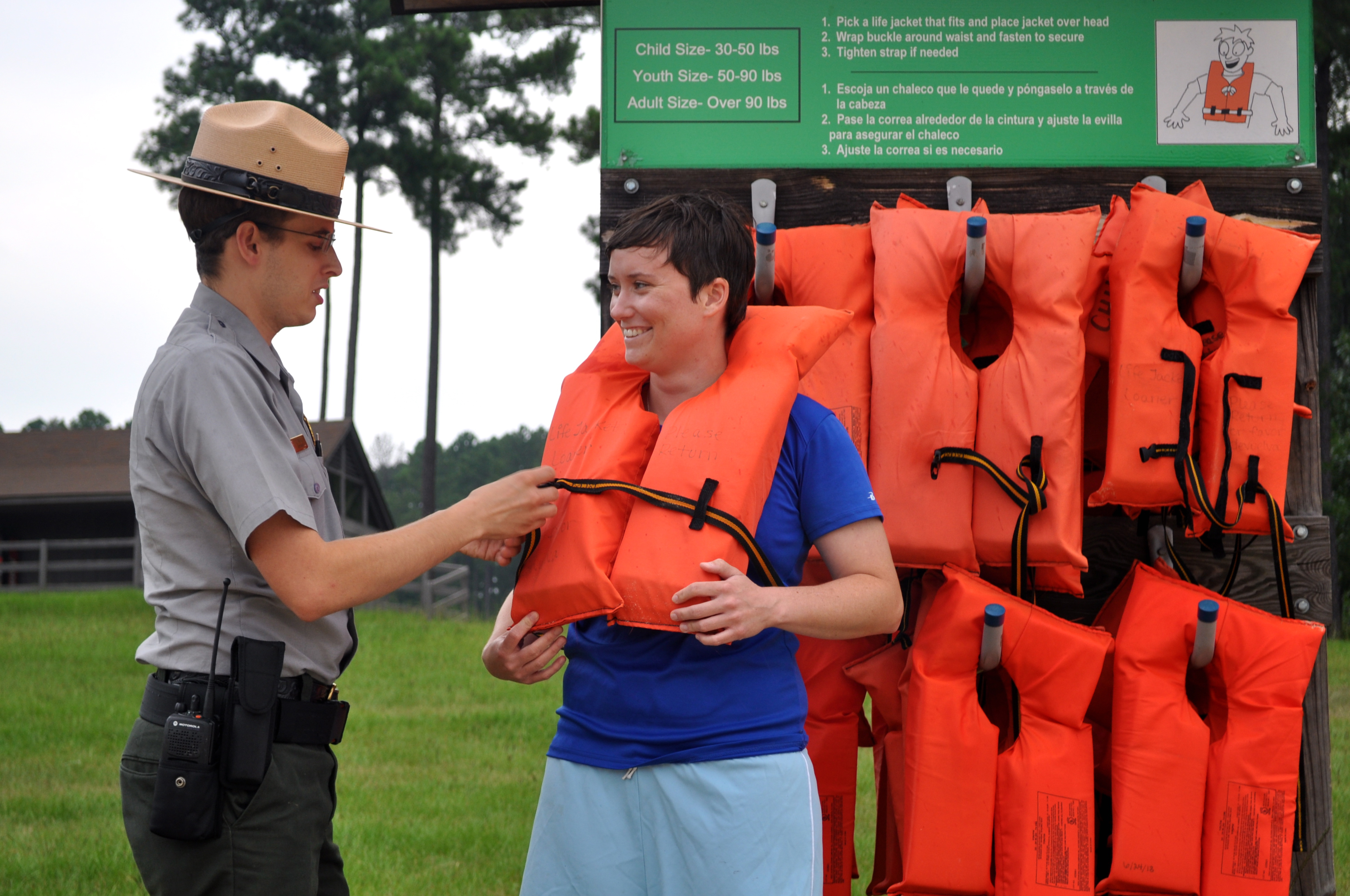 Photo by: Ranger Benjamin Pitcock Long Branch Recreation Area Ranger exchanges an inflatable for a PFD. |