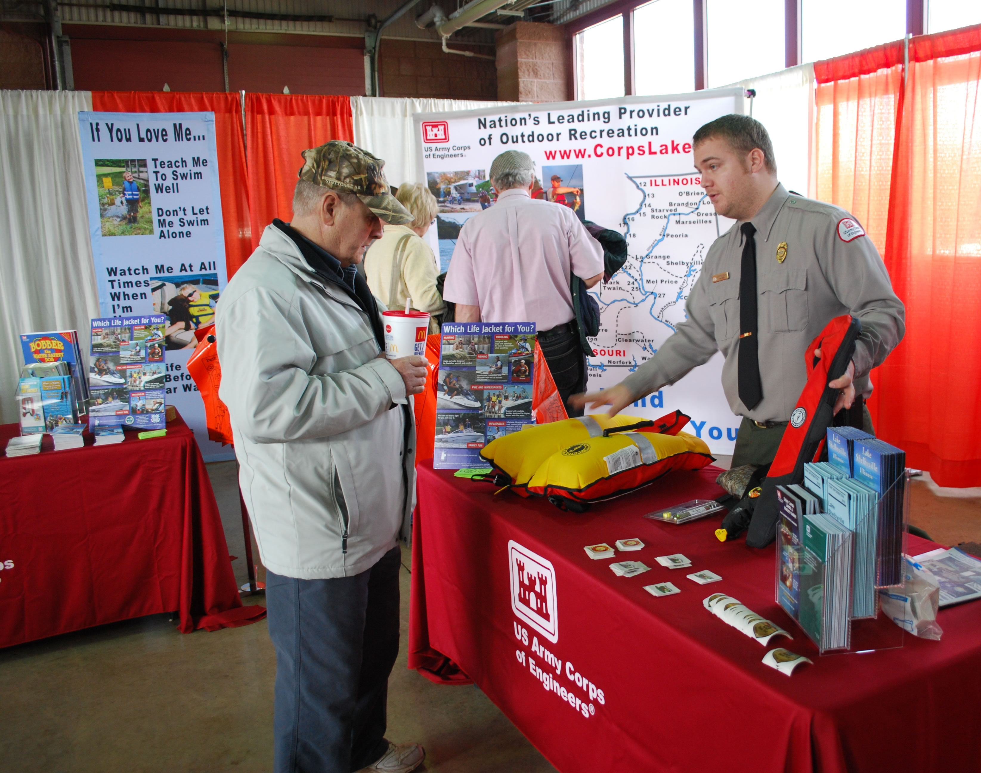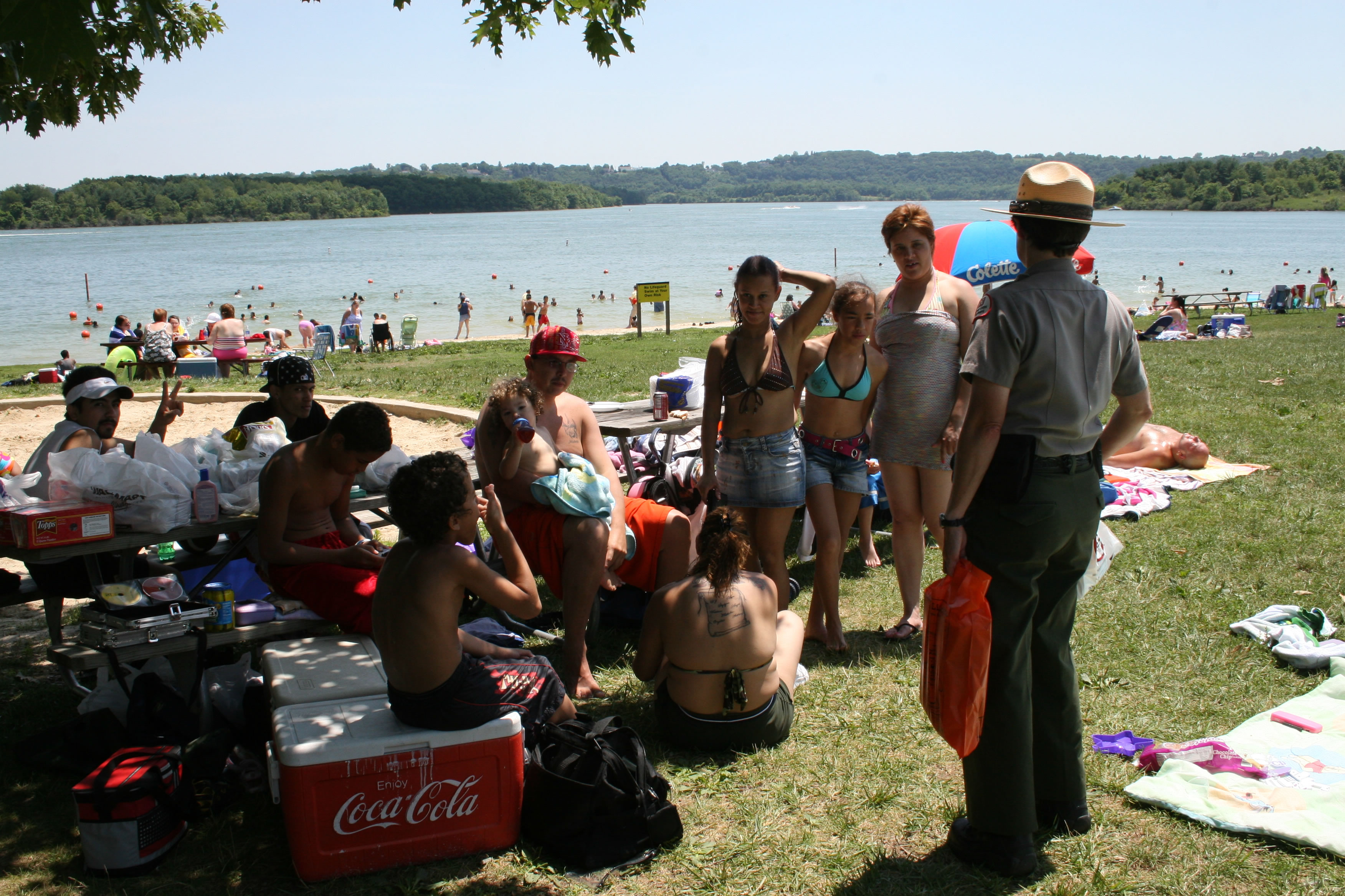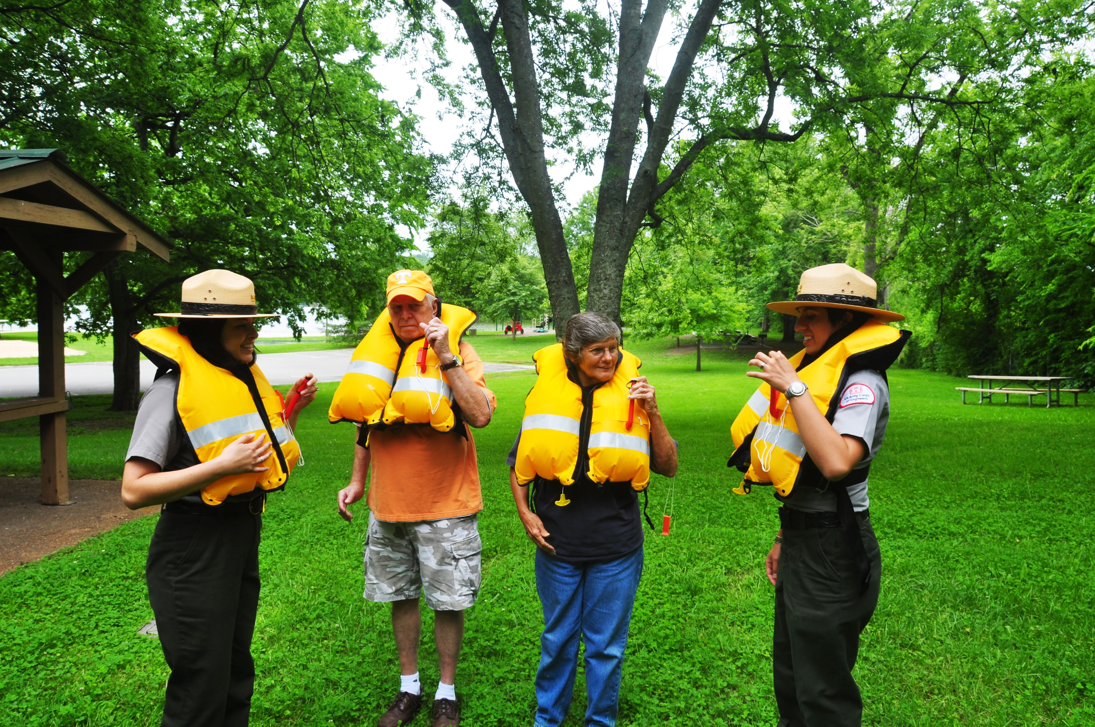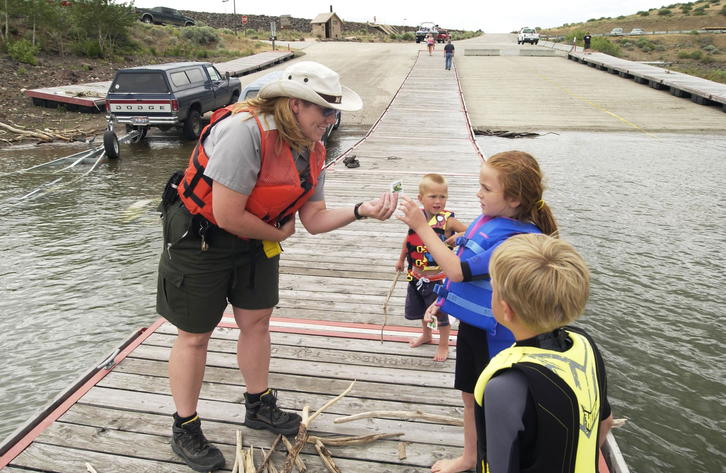 Photo by: Ranger Benjamin Pitcock Long Branch Recreation Area Ranger exchanges an inflatable for a PFD. |