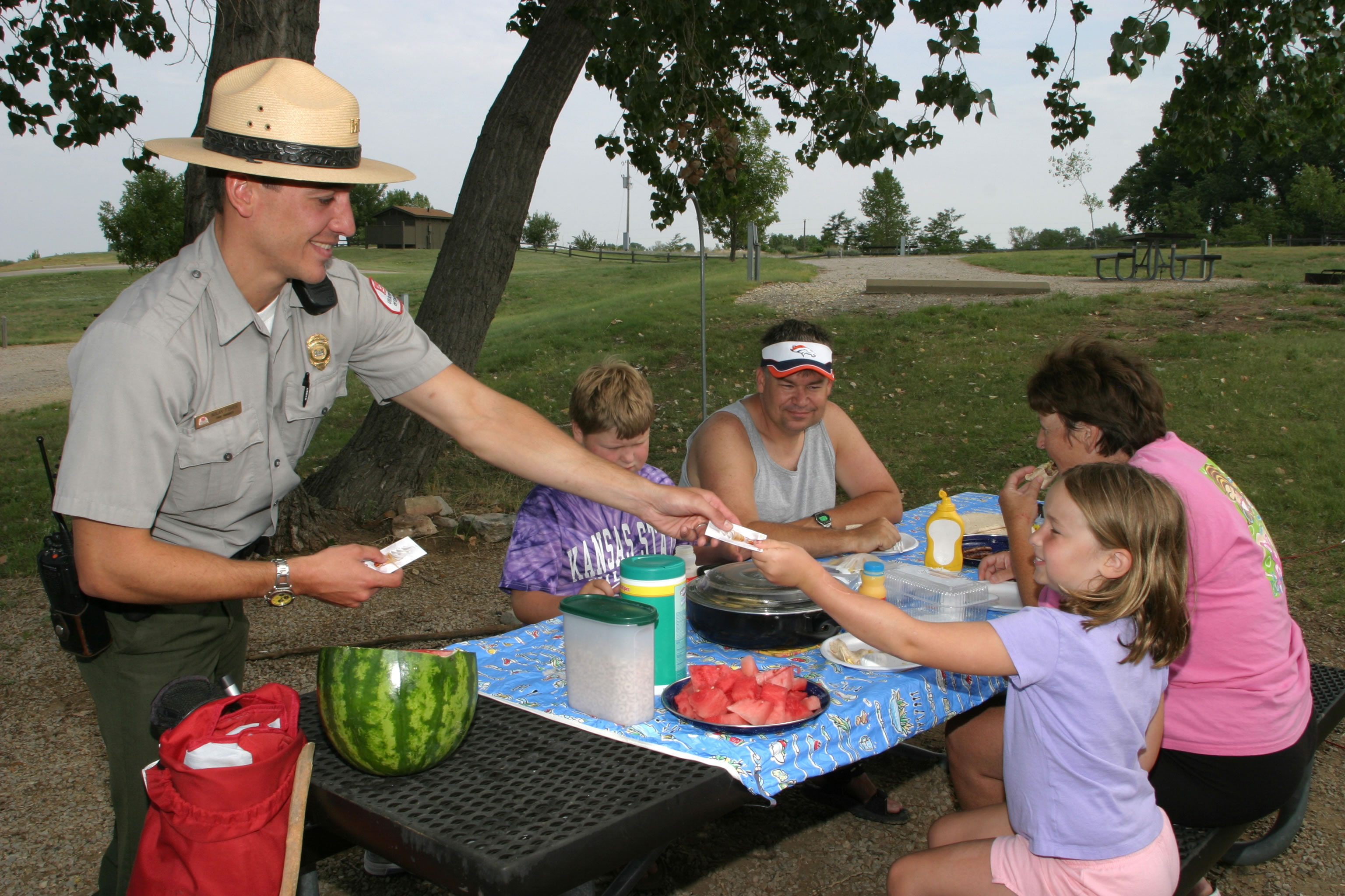 Photo by: Rob Carr Ranger assisting campers at Dam Site Lake campground |