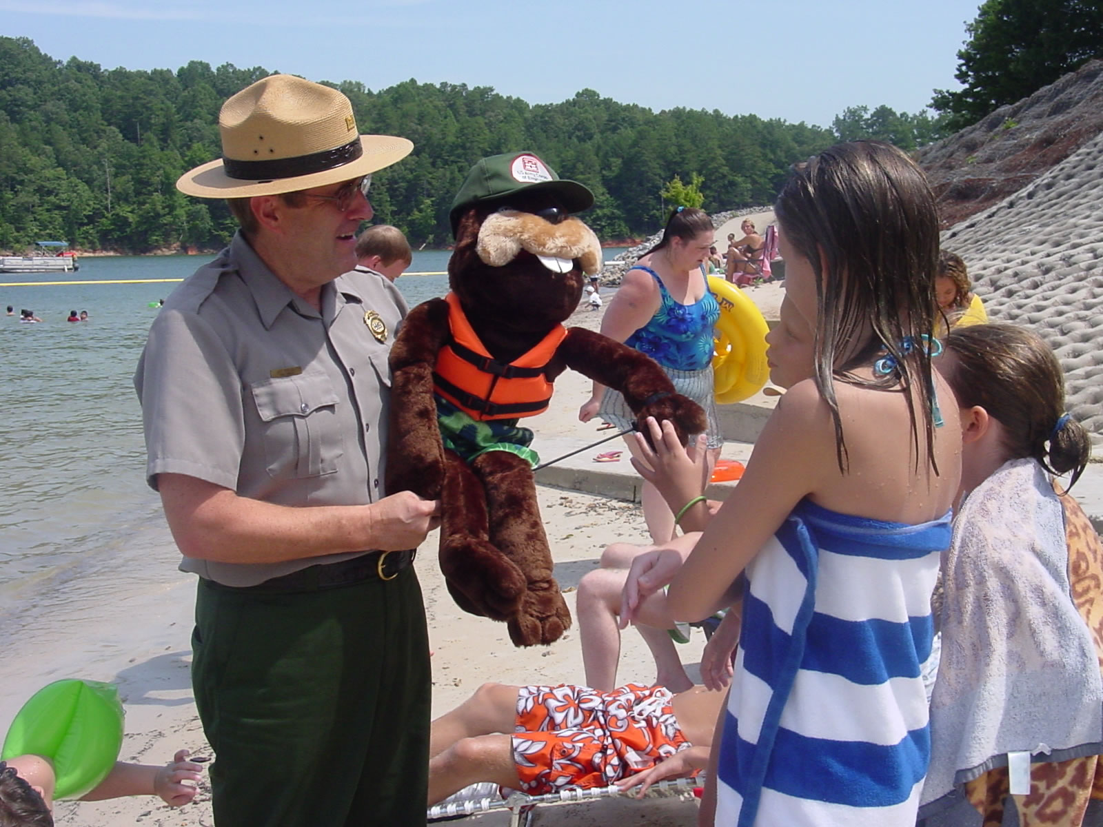 Park Rangers and Buddy Beaver teach children the importance of water safety at a Bass Pro Shops store event |