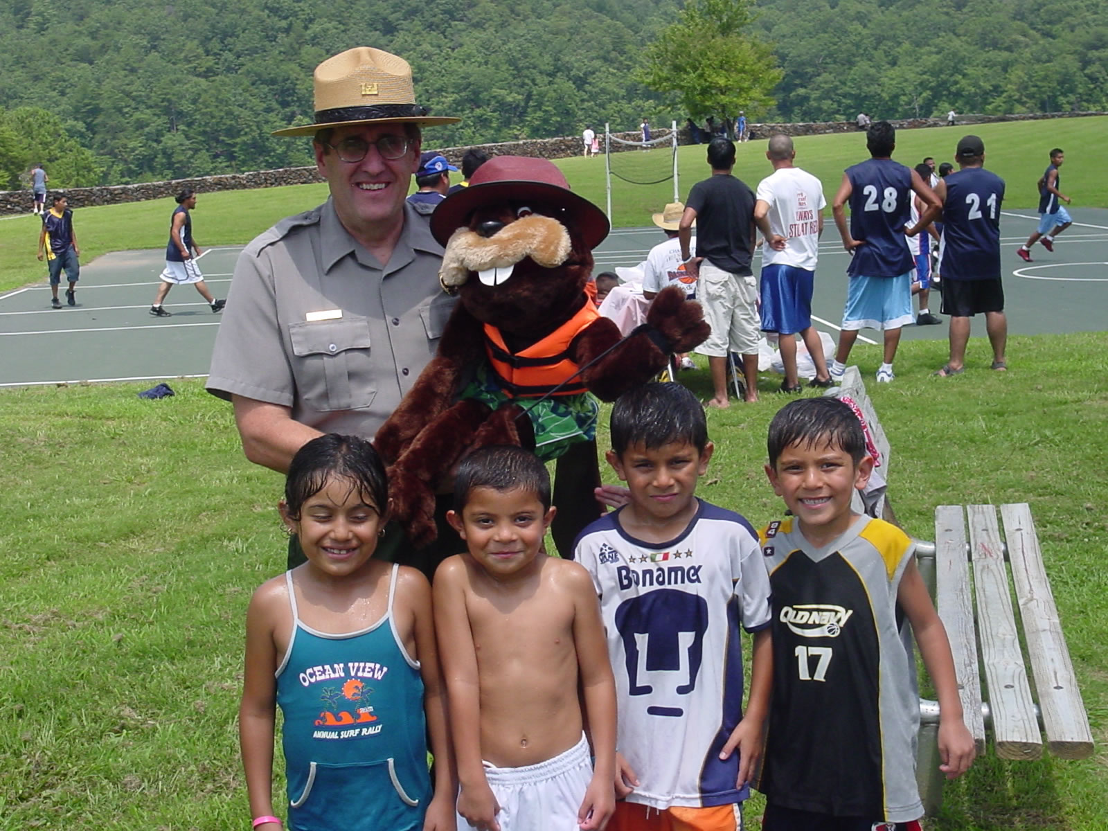 Photo by: Ranger Robert Wattenschaidt Fun at the Playground Ranger Joe Williams presenting a water quality interpretive program to elementary students. |